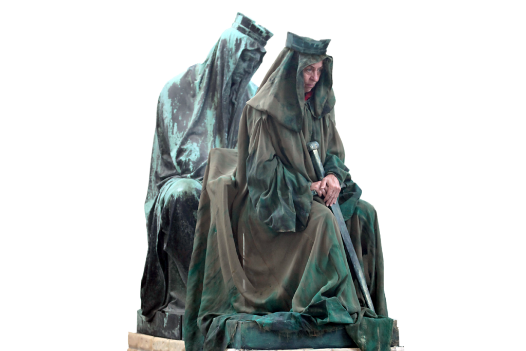 Zusammenarbeit. Die „Trauernde Magdeburg“ wandelt sich in ein lebendes Bild, und sie erzählt ihre